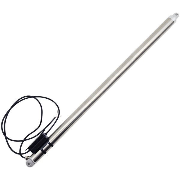 Il s'agit d'un vérin électrique inoxydable, car il a la forme d'un tube, d'une course de 300 mm, accepte une alimentation de 12V ou 24V CC et une poussée maximale de 800 N / 80 kg / 180 lbs. Sa conception tubulaire compacte le rend idéal pour des applications en domotique, mécanique, automobile et industrie.