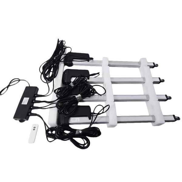 1) Appuyez et maintenez le bouton ▲ de la télécommande, quatre vérins électriques s'étendent vers l'extérieur en même temps ; Relâchez le bouton, quatre vérins électriques s'arrêtent.