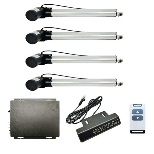 Si vous souhaitez utiliser plusieurs vérins électriques pour monter et descendre un équipement, par exemple deux, trois ou quatre vérins électriques. Étant donné que le moteur CC à grande vitesse dans le vérin électrique ne peut pas fonctionner exactement à la même vitesse, la vitesse de déplacement du vérin électrique sera également différente. Lorsque plusieurs vérins électriques fonctionnent en même temps, leurs vitesses réelles ne peuvent pas être exactement les mêmes. Dans ce cas, nous pouvons utiliser un contrôleur synchrone pour faire fonctionner plusieurs vérins électriques pour monter ou descendre de manière synchrone. Ils fonctionnent complètement en synchronisation sans aucune différence.