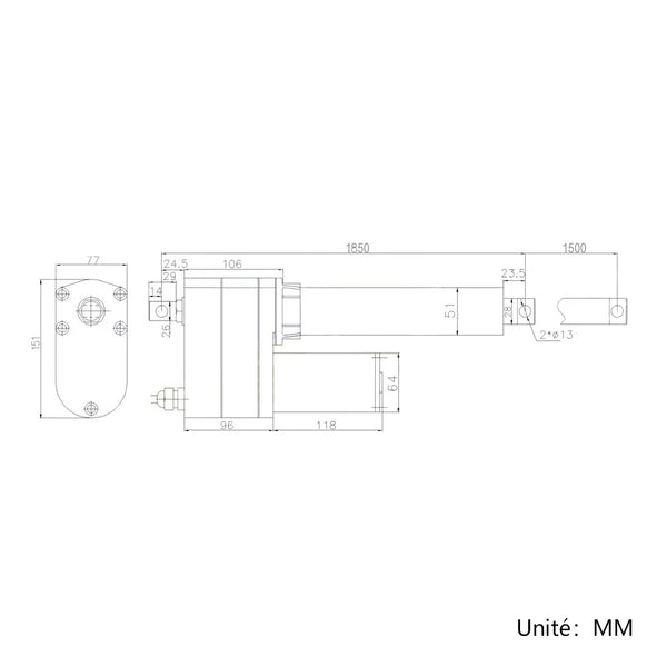 Deux interrupteurs de fin de course intégrés, le vérin électrique s'arrêtera automatiquement lorsque la tige de course atteint la position limite.