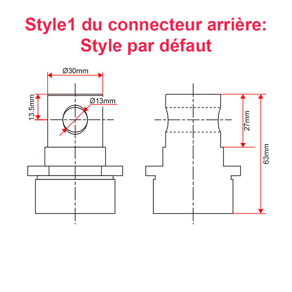 Le style du connecteur avant et arrière peut être personnalisé : la valeur par défaut est un connecteur à trou ouvert, qui peut être personnalisé avec un connecteur de fente, un connecteur avec filetage intérieur, etc. Et vous pouvez fournir des dessins pour la personnalisation.
