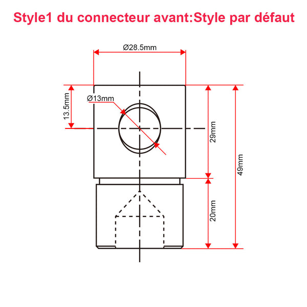 Diamètre des trous de montage des connecteurs avant et arrière: 13 mm