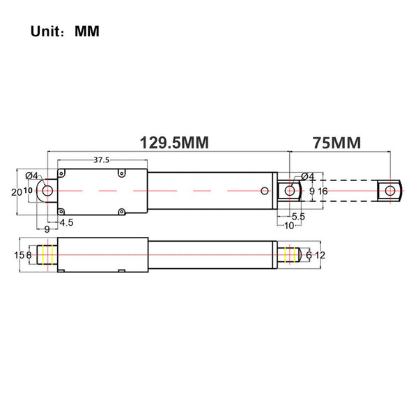 Deux interrupteurs de fin de course intégrés (non réglables), le vérin électrique s'arrêtera automatiquement lorsque la tige de course atteint la position limite.